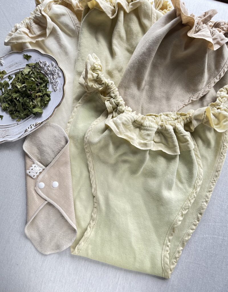 夏の盛りの大和当帰の生葉で染めたライナーを作ったり、パンツを染めたり。すっかり大和当帰の素晴らしいパワーに魅了されております。